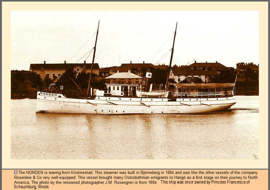 The Norden is the ship that Karin Noren traveled on from Göteborg to Hamburg, Germany